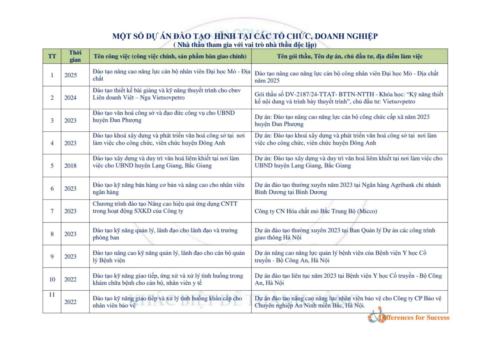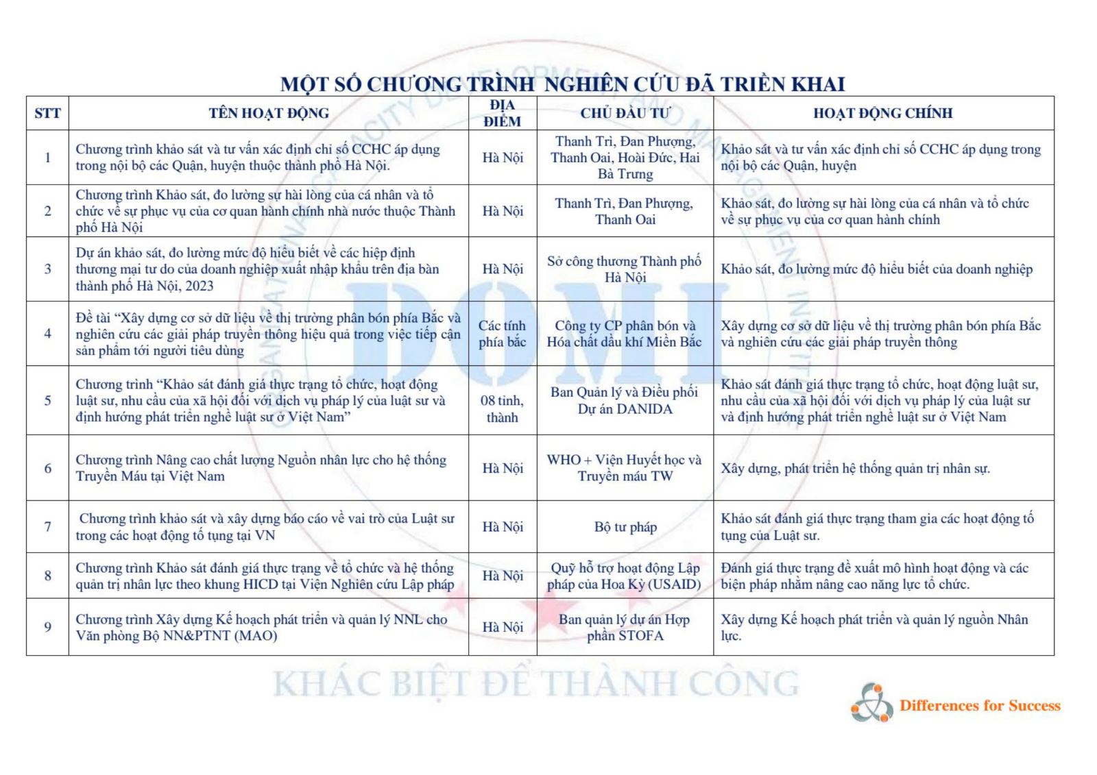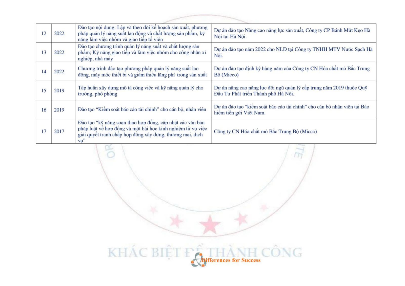 - Hoạt động đào tạo, tư vấn, hội thảo
